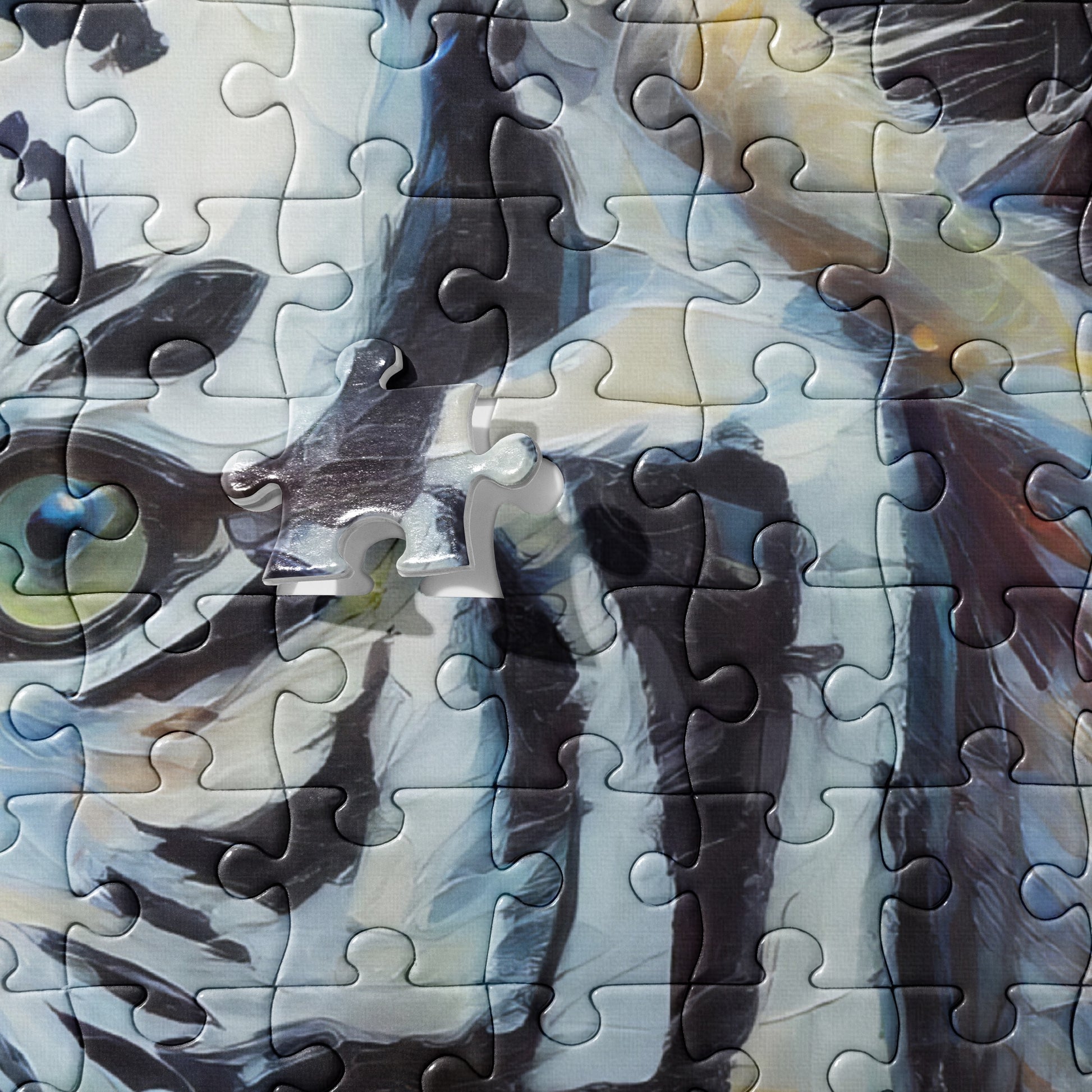 Enjoy hours of fun with our jigsaw puzzle featuring a vibrant, stylish, and colorful oil painting portrait of a majestic White Tiger. This elegant and lifelike painting captures the beauty and grace of this magnificent creature, making it a perfect activity for nature and wildlife lovers. Once completed, the puzzle can be framed to create a stunning piece of wall décor for your home or office.