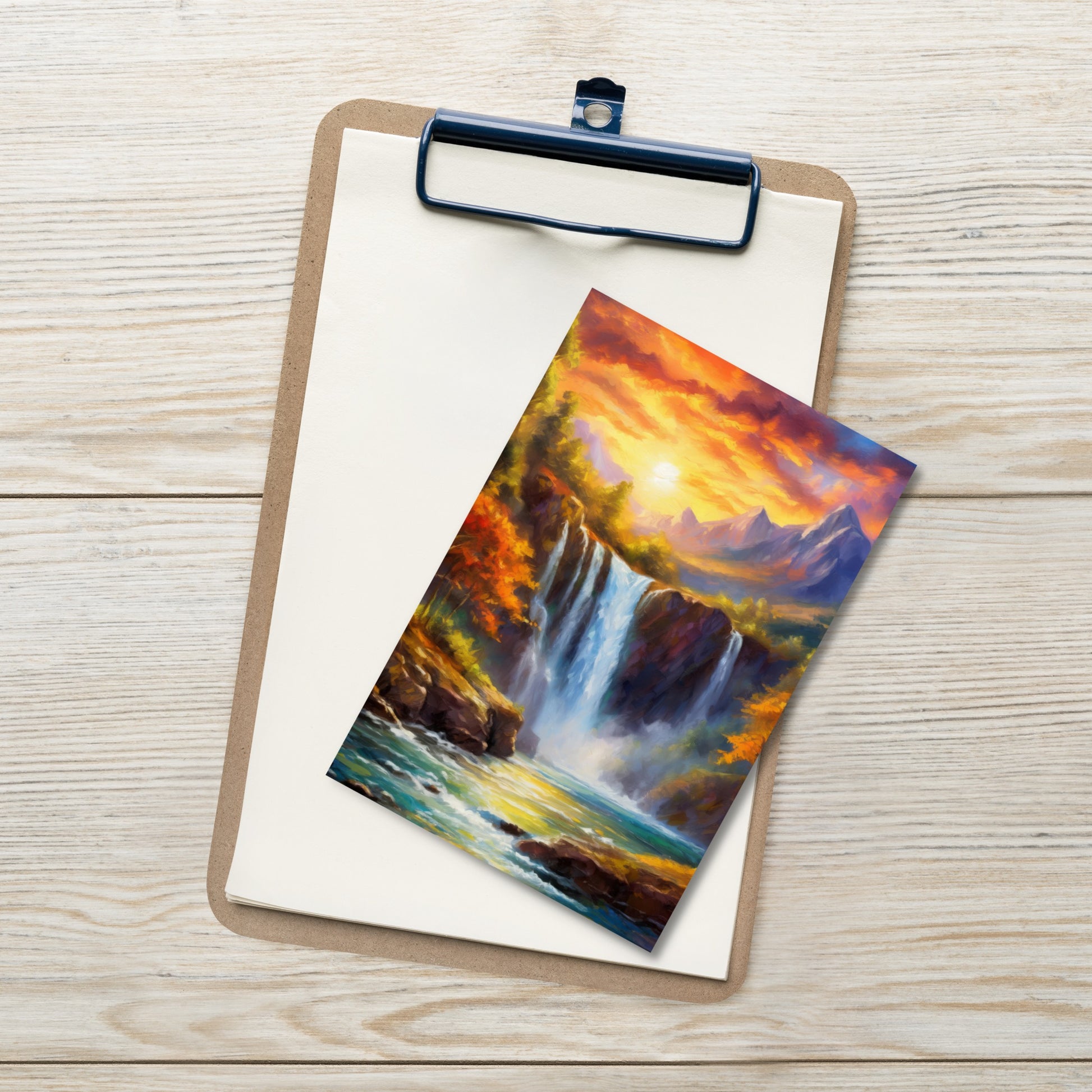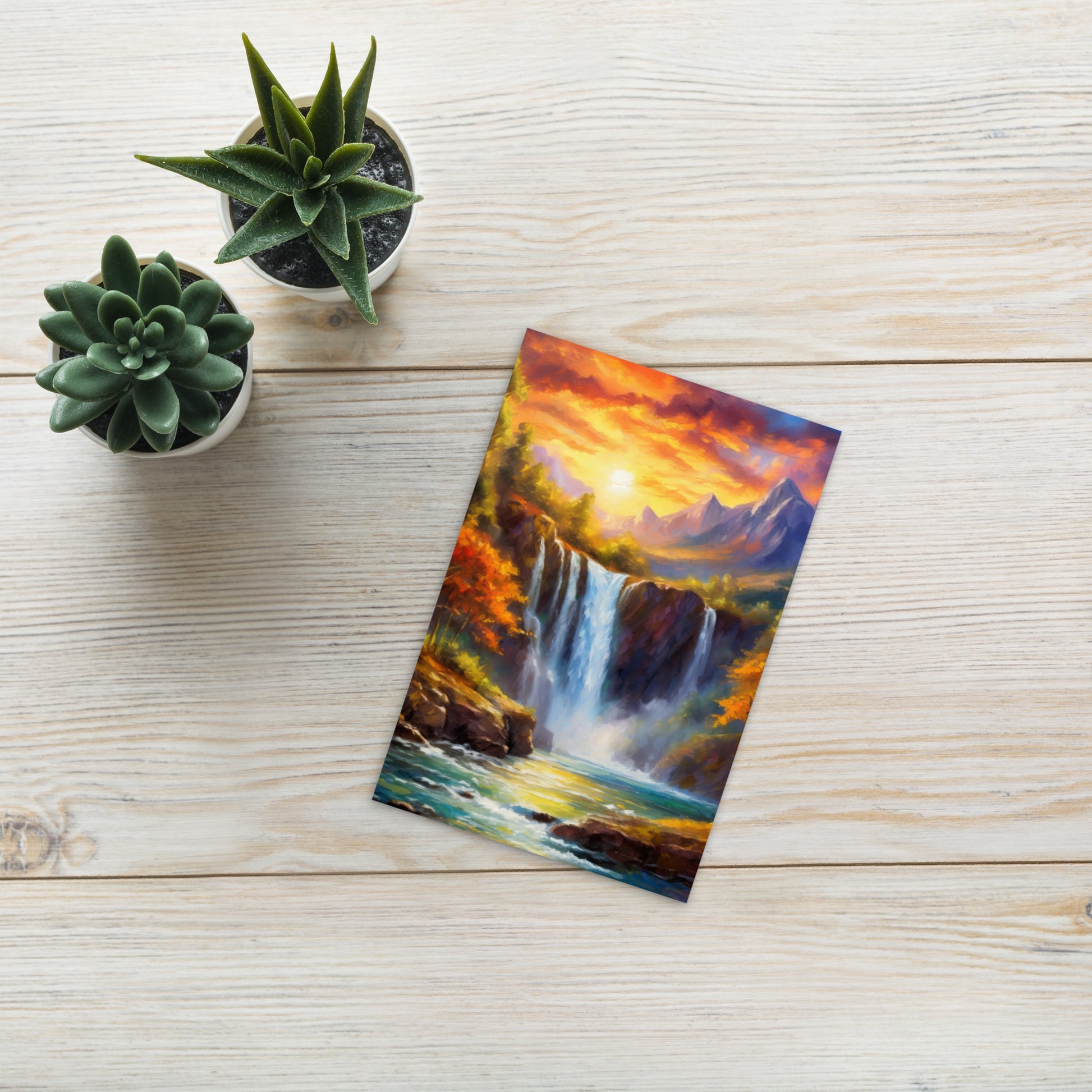 Scenic Mountain Waterfall Postcard - Autumn Sunset Oil Painting - Vibrant and Stylish Home & Country Décor - Perfect Gift For Nature Lovers