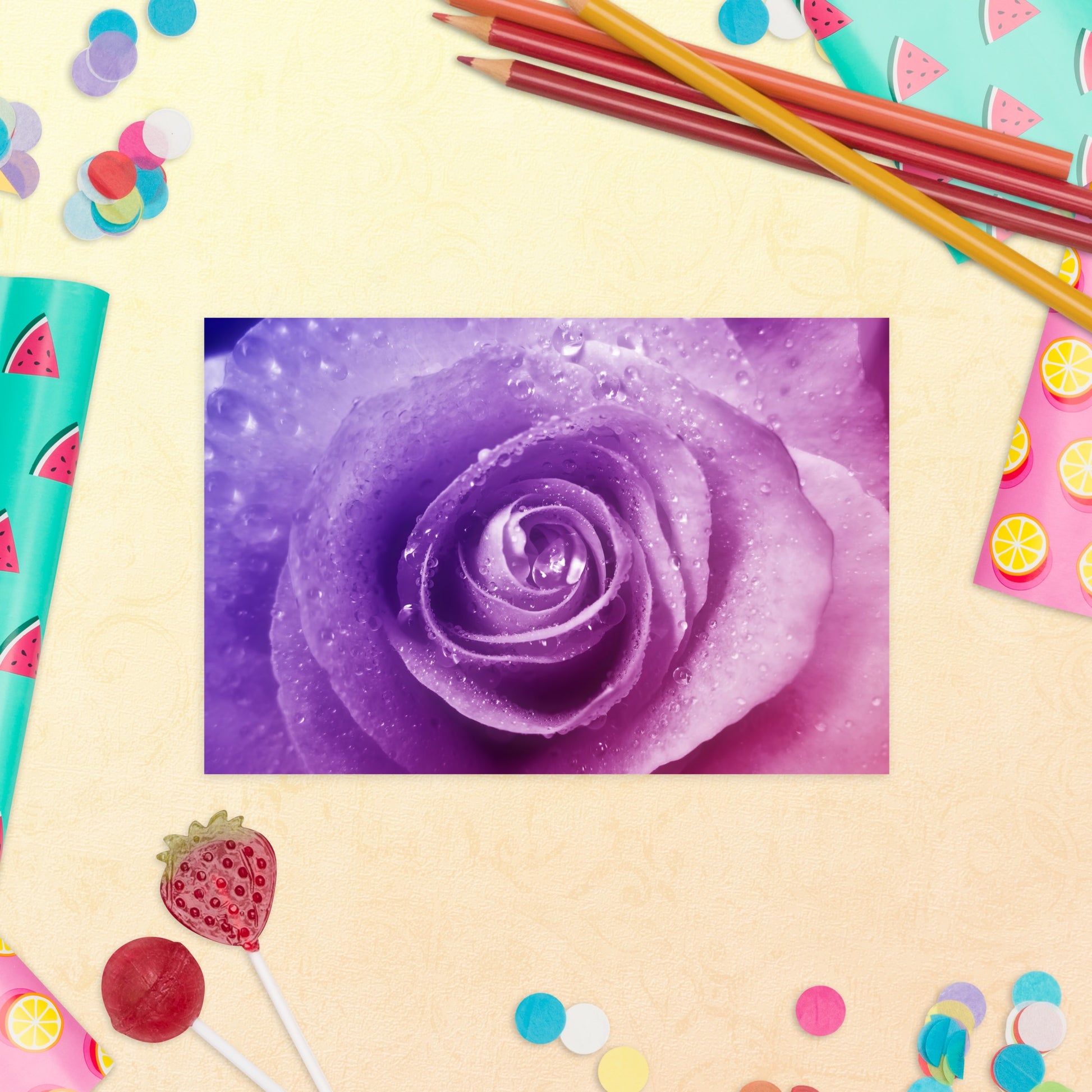 Beautiful Pink Rose Standard Postcard - Vibrant Macro Photograph With Purple Hints, Perfect For Nature And Flower Lovers - Frameable Artwork